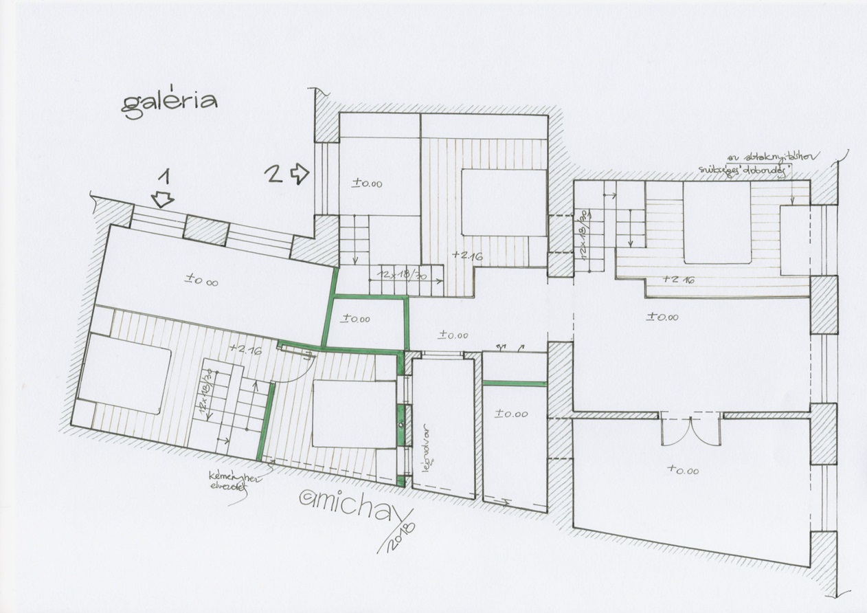 The larger apartment has an area of 83 m², plus a 22 m² gallery level. It includes a living room, three bedrooms (two of which are located in the gallery), and two bathrooms. The smaller apartment is 31 m², with an additional 20 m² gallery level, featuring a living room, two bedrooms, and one bathroom. The property boasts a ceiling height of 4.2 meters, with the gallery levels having a height of over 190 cm.